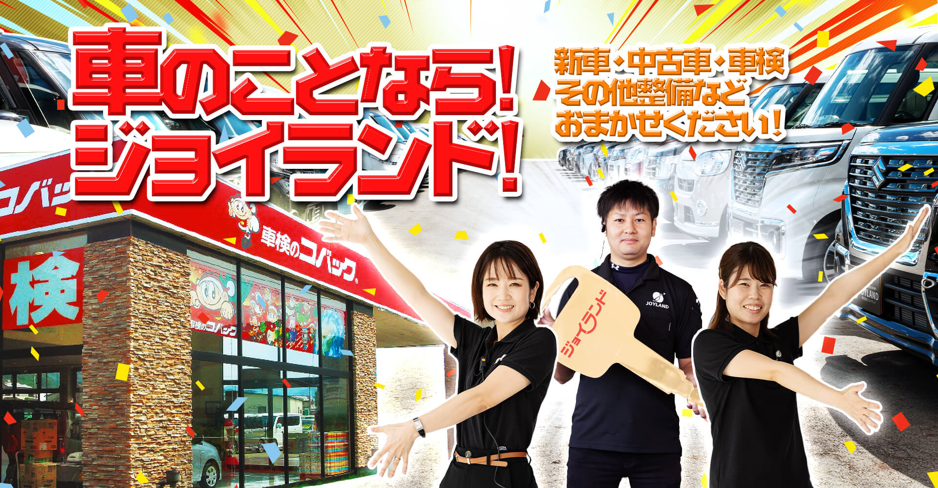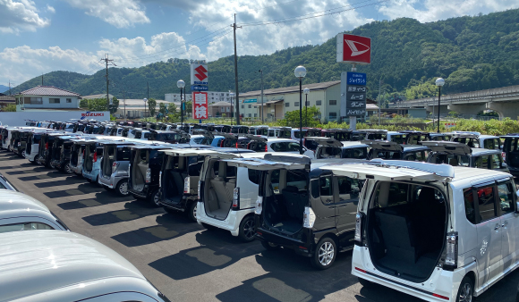 ジョイランドが販売する中古車は、当社の整備スタッフが丁寧に事前点検・清掃を行った自慢の中古車です。店頭にある大型展示場には軽自動車から普通車まで、常時130台展示しています。店頭の車はもちろん、全国からお客様のご要望にあったお車をお探してお届けすることも可能です。